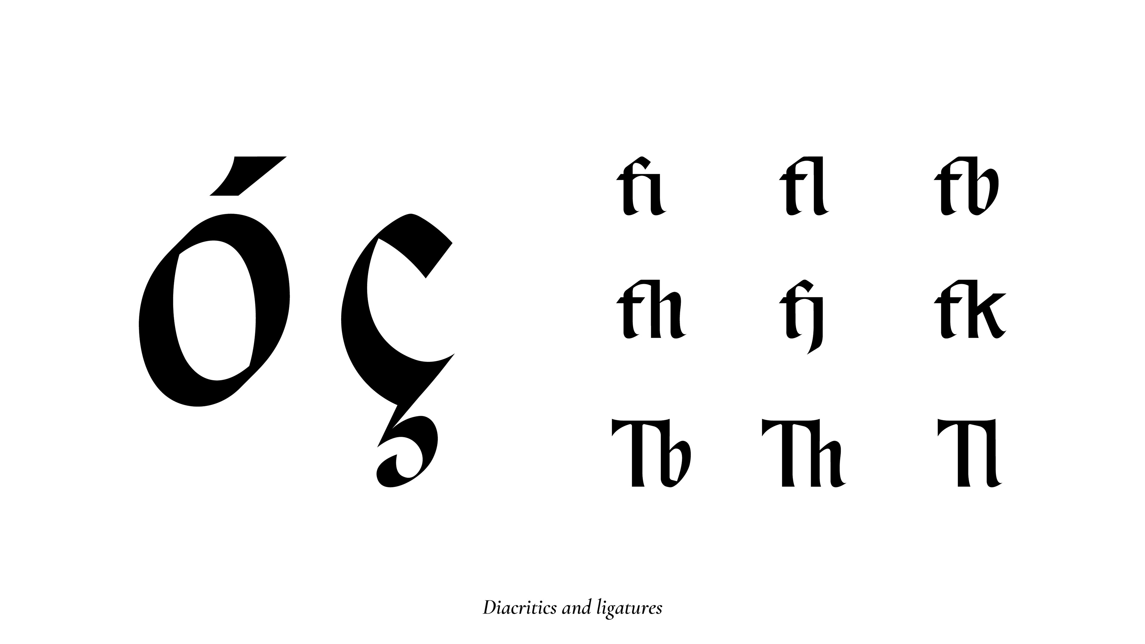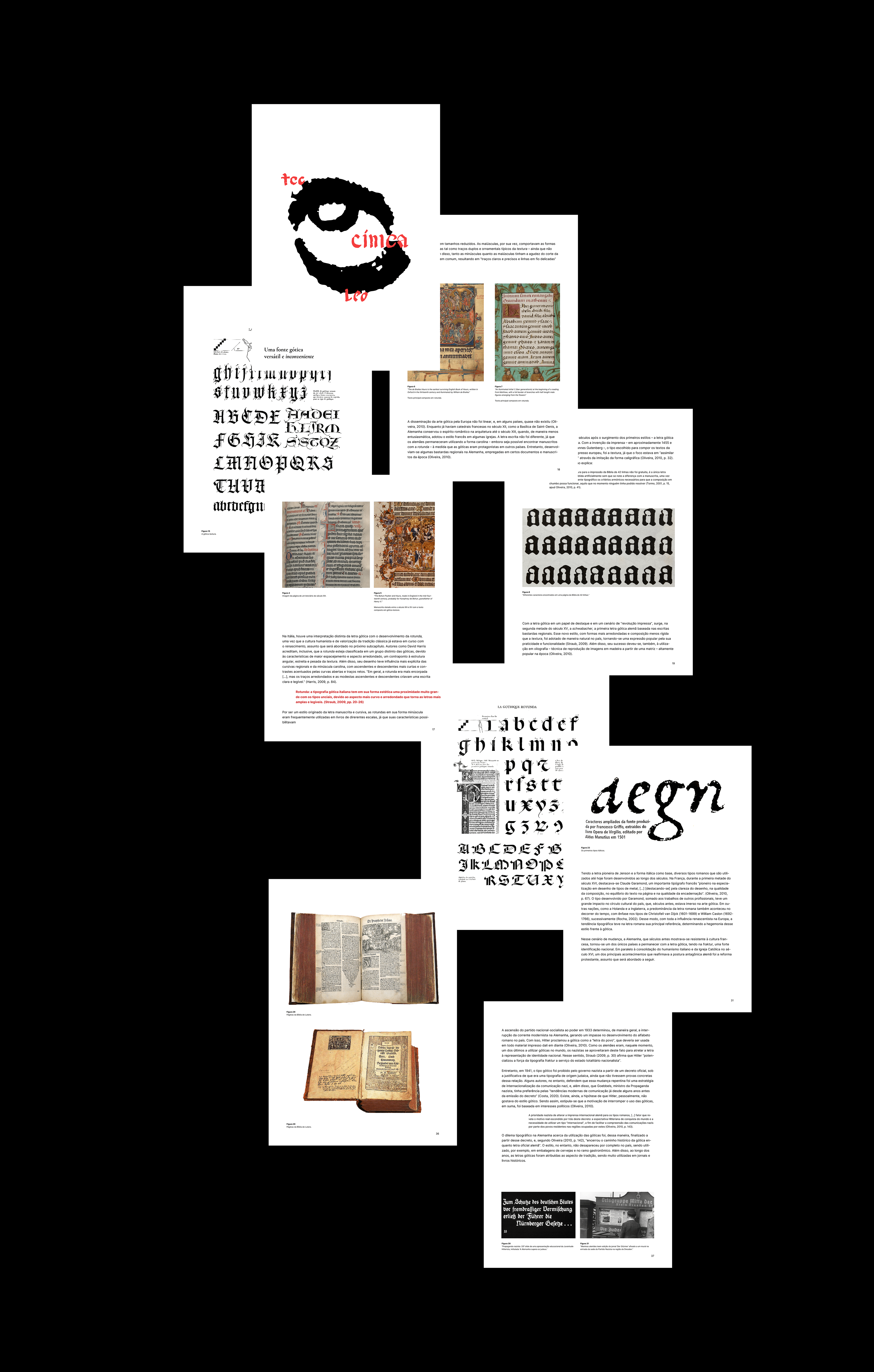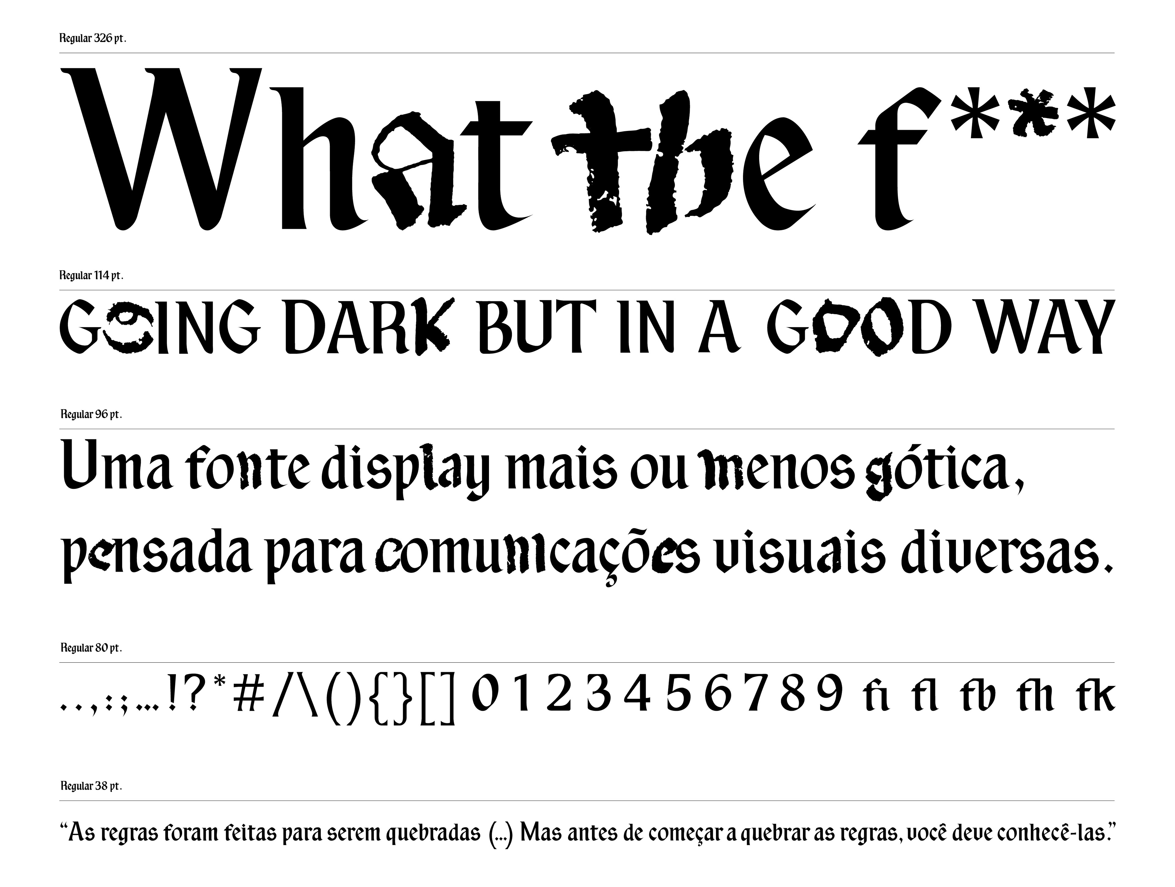 The hybrid typographic construction, the choice of vibrant colors, unconventional layouts, and unusual illustrations were fundamental in dissociating the typeface from certain stereotypes surrounding Gothic lettering. In addition, the creative process was based on research of bibliographic and iconographic references, followed by an experimental approach to design.