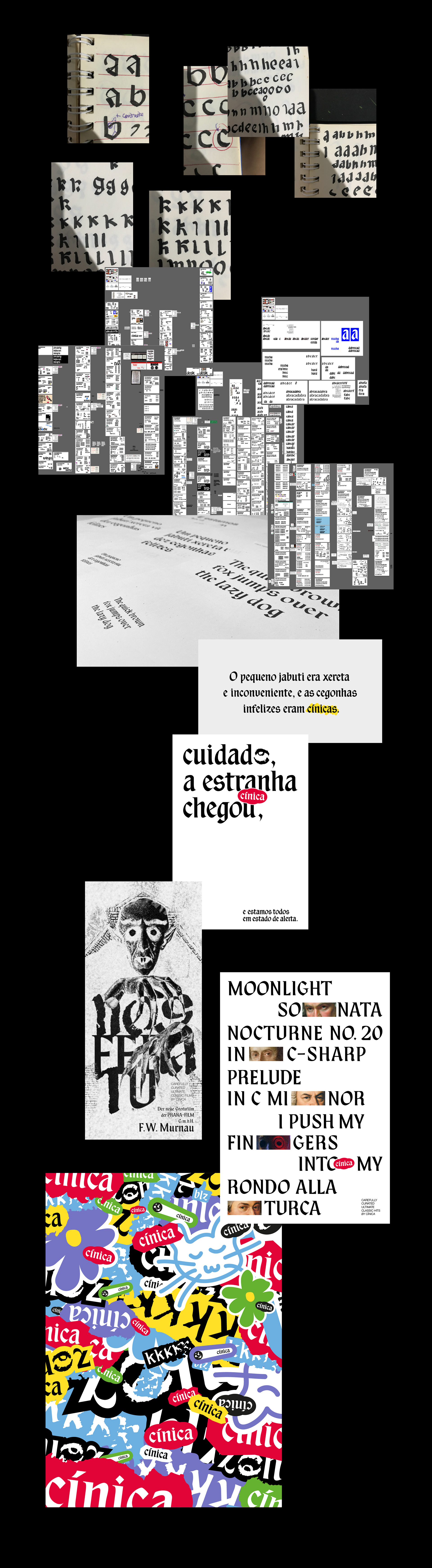 CÍNICA É UMA TIPOGRAFIA E UMA SÉRIE GRÁFICA EXPERIMENTAL QUE DESAFIA A FUNCIONALIDADE E A EXPRESSIVIDADE DA LETRA GÓTICA (ALÉM DE SER MEU TCC).