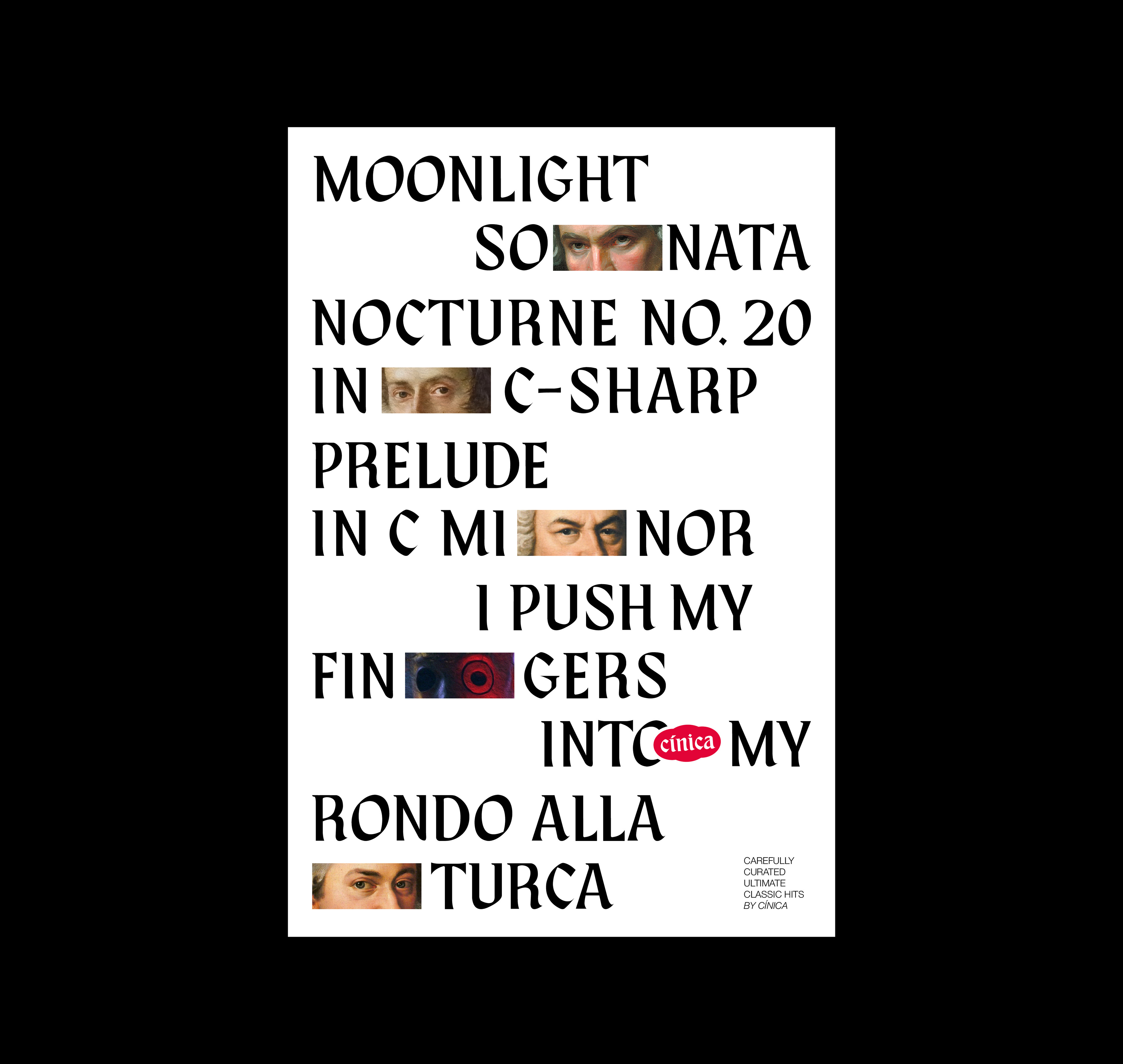 CÍNICA IS AN EXPERIMENTAL TYPEFACE AND GRAPHIC SERIES THAT CHALLENGES THE FUNCTIONALITY AND EXPRESSIVENESS OF GOTHIC LETTERING (AND IT’S ALSO MY UNDERGRADUATE THESIS).